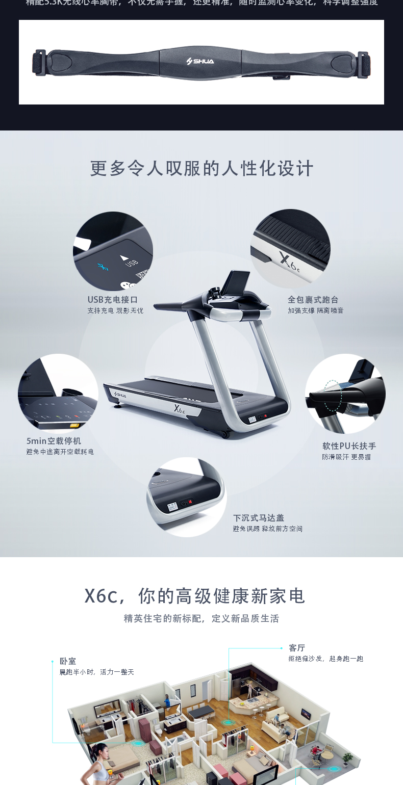 舒華跑步機家用款X6C商用減震健身房專用靜音大型器材SH-T6700L